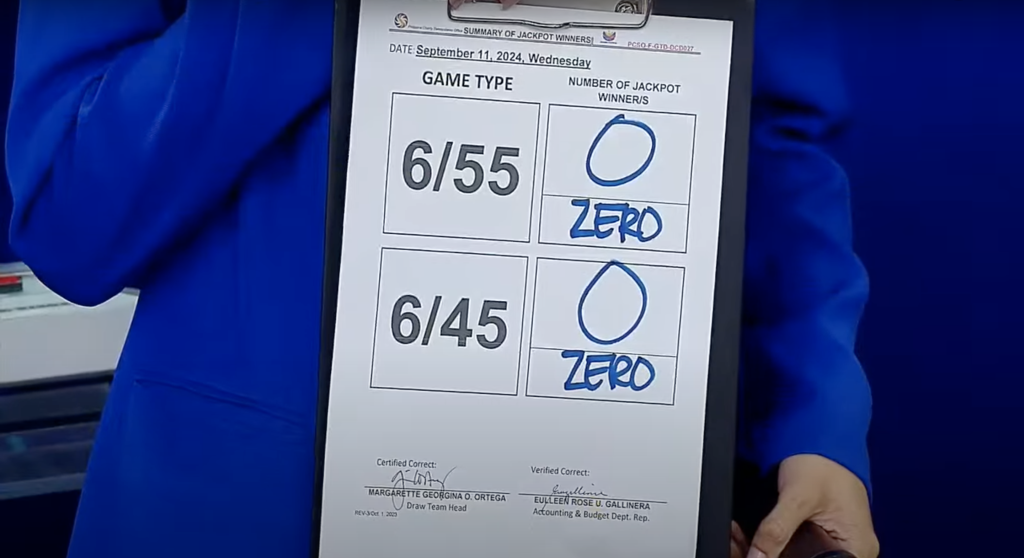 In the lotto draw on Wednesday, September 4, 2024, there were no winners for the ₱270 million Grand Lotto 6/55 and ₱26 million Mega Lotto 6/45 jackpots. Because no one won the big prizes, the jackpots will increase for the next draw. Winning Numbers for September 4, 2024: The draw happened at 9PM. No ticket […]